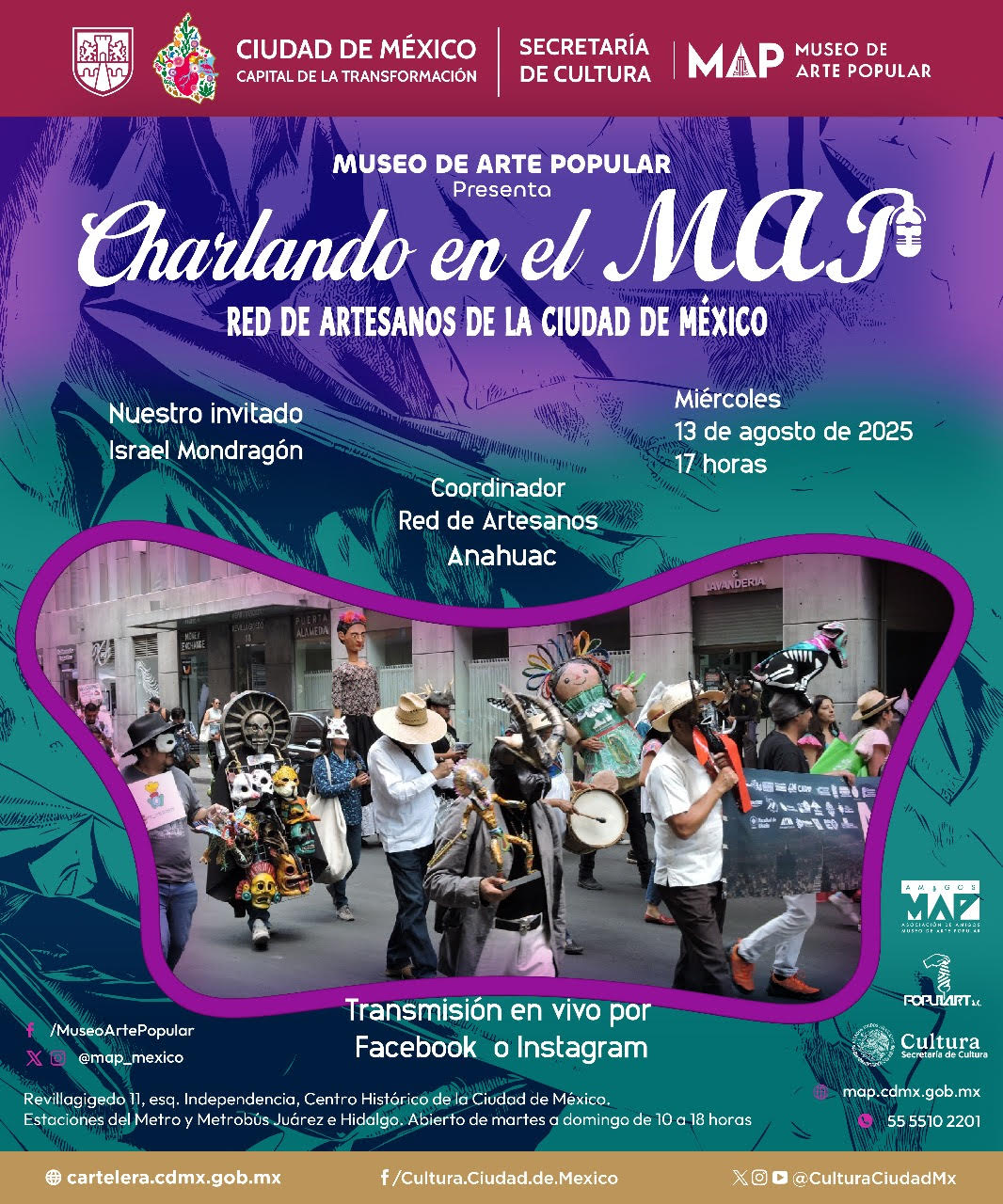 Charlando en el MAP admin agosto 12, 2025 artepopular Charlando en el MAPCharlando en el MAP Invitado: Israel Mondragón, Coordinador de la Red de Artesanos Anahuacmap.cdmx.gob.mx Navegación de entradas Anterior Entrada anterior: Presentación editorial «Mujeres, género y feminismos» de Karen CorderoSiguiente Entrada siguiente: Biblioteca CI