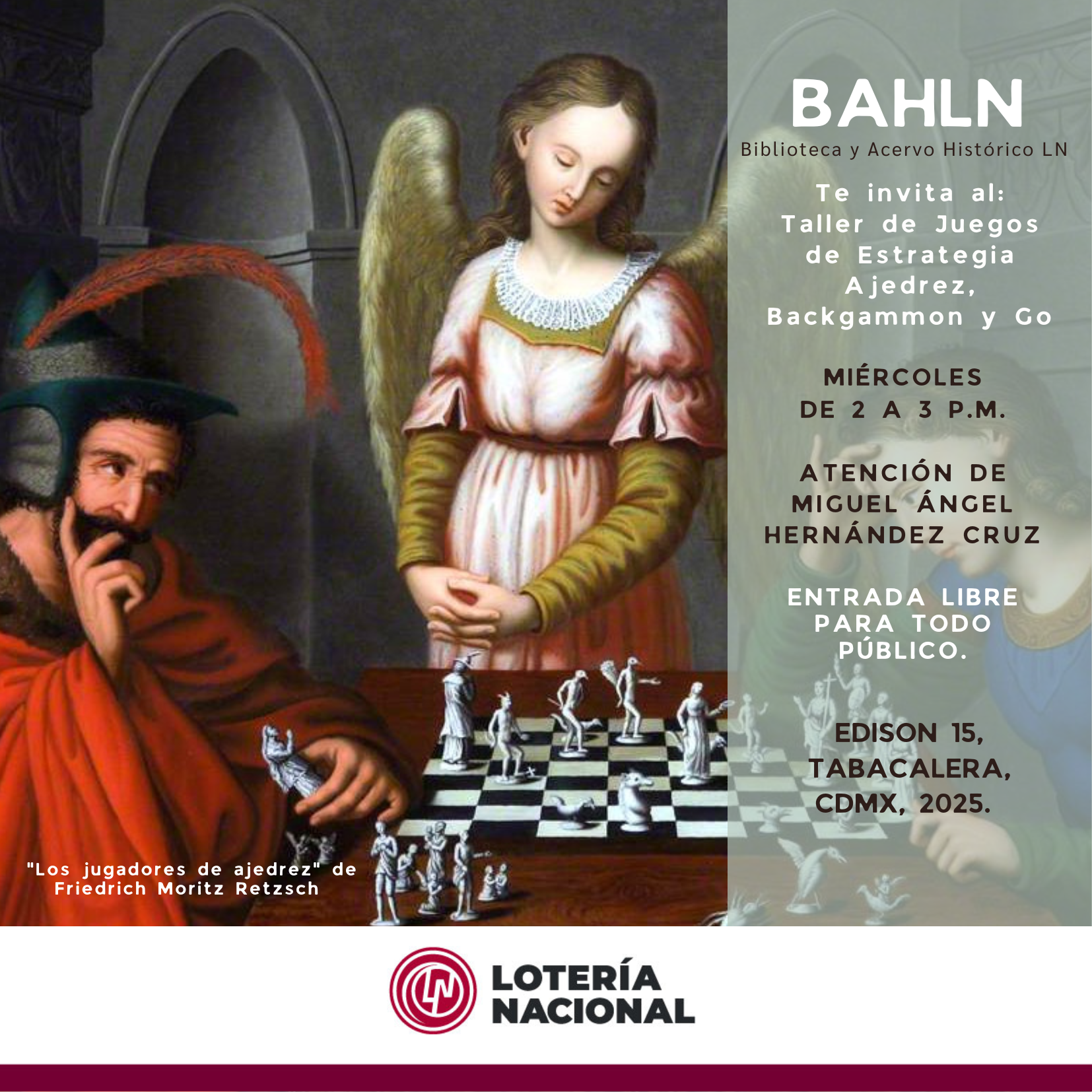 Ven a aprender a jugar ajedrez, Backgammon y el juego milenario chino Go, con la atención del Maestro Miguel Ángel Hernández Cruz, que te acompañará paso a paso en cada jugada. Abierto para todo público a partir de los 6 años. ENTRADA LIBRE los miércoles de 14:00 a 13:00 hrs.