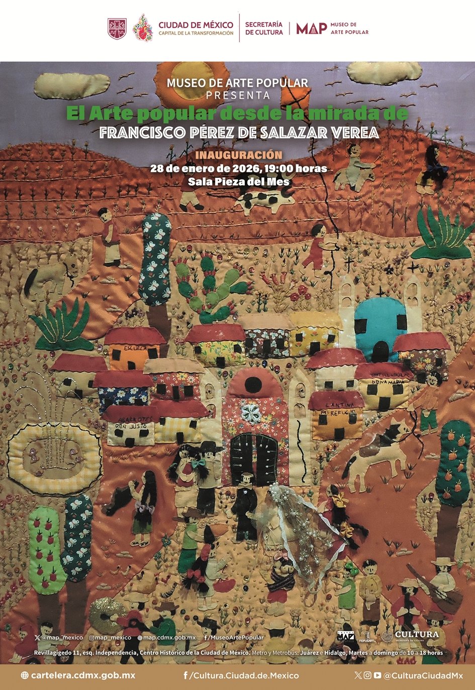 Inauguración: El Arte popular desde la mirada de Francisco Pérez de Salazar Verea admin enero 27, 2026 artepopular Inauguración: El Arte popular desde la mirada de Francisco Pérez de Salazar Vereahttps://www.map.cdmx.gob.mx/ Navegación de entradas Anterior Entrada anterior: Simposio “Legado de saberes: 490 años del Imperial Colegio de Tlatelolco”Siguiente Entrada siguiente: Charlando en el MAP